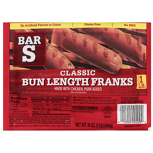 Bar S Classic Bun Length Franks 16 oz