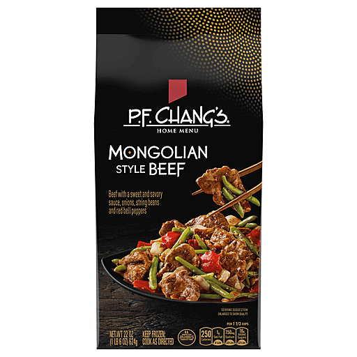 Experience a delicious, restaurant-style dining experience at home with P.F. Chang's Home Menu Mongolian Style Beef Skillet Meal. Featuring tender beef with onions, string beans and red bell peppers in sweet and savory sauce for frozen meals with authentic Asian food flavor. This frozen meal contains no artificial flavors, colors or preservatives, ensuring delicious and satisfying frozen entrees every time. Ideal for family meals when you're craving something special, these frozen skillet meals provide the gourmet experience of restaurant-quality cuisine in quick frozen meals that can be prepared in the comfort of your home. Simply cook this frozen food on the stove top according to the package instructions for easily prepared meals in minutes. Store this 22 ounce frozen beef meal kit in your freezer until you're ready to enjoy. Stay in. Eat like you didn’t. Far from ordinary, P.F. Chang's Home Menu creates a gourmet Asian experience in your own kitchen. Simple, fresh ingredients balance one another to bring out all the best flavors—that’s how easy Asian food is done.