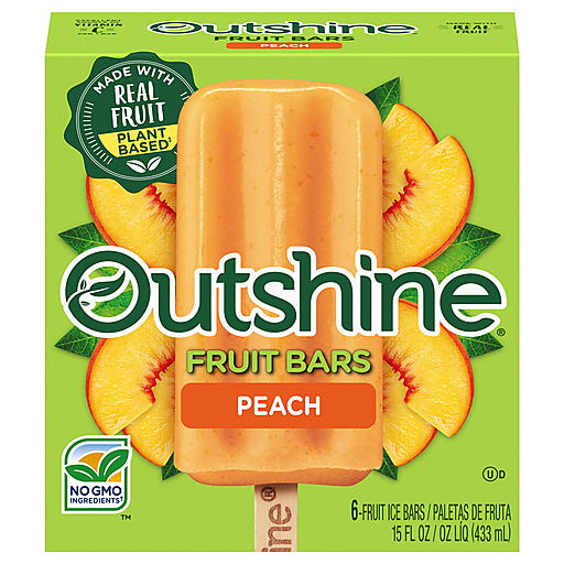 Outshine Peach Frozen Fruit Bars are a refreshing frozen snack bursting with delicious peach flavor. These gluten free Outshine bars are made with real fruit, capturing the sweet essence of a real peach to help keep you cool and refreshed. Each Outshine frozen fruit bar is made with no GMO ingredients and has no artificial colors, flavors, sweeteners or high fructose corn syrup for a feel-good snack. Enjoy these wholesome fat free Outshine bars any time of day, whether you want a feel-good peach snack or need a little afternoon pick-me-up. Snack brighter with Outshine. These fruit bars are fat free, gluten free, and a good source of vitamin C. Try the whole range of Outshine Frozen Fruit Bars to find your new favorite summertime snack or after-dinner delight. Choose from fruit bars, fruit bars with no sugar added, variety packs, and more. You can even mix and match your favorite Outshine Fruit Bars in a blender (remember to remove the sticks!) to make deliciously refreshing mocktails that are sure to cool down any hot afternoon. With more than a dozen real fruit flavors to choose from including creamy coconut, strawberry, pineapple, grape, and more, the possibilities are endless!