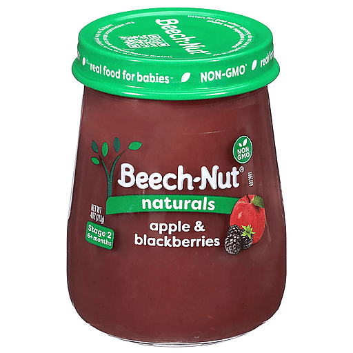 Beech-Nut Naturals Baby Food is made with simple, non-GMO ingredients. Our apple & blackberry baby food puree has no artificial preservatives, colors or flavors and no added sweeteners--just what you'd expect for baby's first foods. Our fruits and veggies are gently cooked to preserve color, flavor, and nutrients to create a puree that's perfect for introducing solids. Free of the following allergens: dairy, gluten, peanut, soy, egg. This Stage 2 baby food jar is ideal for your baby 6 months and up.