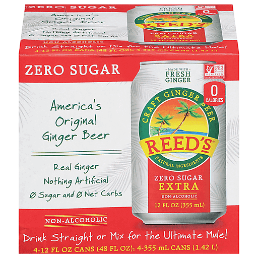 Reed's Zero Sugar Extra Non Alcoholic America's Original Ginger Beer 4 ea