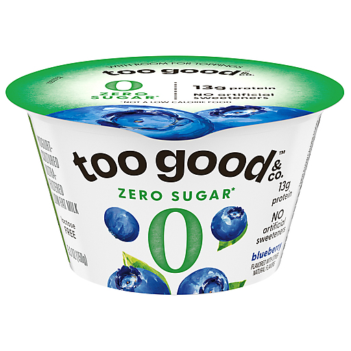 Doing good is about to become a whole lot more delicious with a Too Good & Co. Zero Sugar* Blueberry Yogurt-Cultured Ultra-Filtered Low Fat Milk Product. Too Good & Co. is raising the bar on goodness with Zero Sugar*, creamy taste and ingredients you feel good about. Every 5.3 oz serving of this zero sugar* yogurt-cultured dairy product is made with low fat ultra-filtered milk for deliciously creamy goodness in every spoonful with 70 calories, 0g of total sugar and 13g of protein per serving. Protein is an essential nutrient we need in our diets, and Too Good & Co. cups are great-tasting, convenient options for adding complete protein goodness every day. Plus, it has no lactose and no artificial sweeteners. Too Good & Co. Zero Sugar yogurt-cultured ultra filtered low fat milk makes a great addition to your breakfast and a delightful afternoon snack. Grab a pack for on the go snacks or pack a snack cup for a tasty pick-me-up whenever you need it. *Not a low calorie food.
