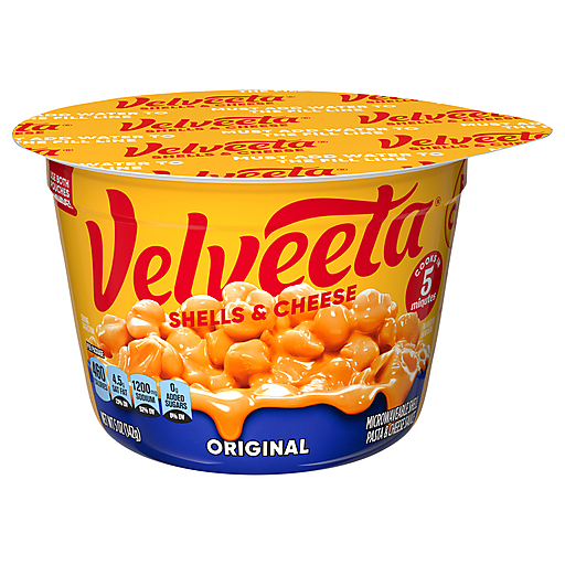 Shell yeah! Live life to the creamiest with Velveeta Shells & Cheese Original Pasta Big Cup, made with real cheese. When your drip is as smooth as ours, you don’t waste time when it comes to delicious indulgence. For instant cheesy gratification, our original recipe macaroni and cheese hits the mark, with iconic, velvety meltability and tender pasta shells that grip the drip like no other. Velveeta’s supremely creamy texture and rich, savory taste satisfy your cravings any day of the week. Looking for easy meals, kids meals or family dinners ready in minutes? Or just a quick side or snack? Our Velveeta mac and cheese shells deliver luxuriously convenient microwave meals for instant mac and cheese. Easy mac cups have everything you need to make delicious, quick meals. Amp things up by customizing our cheesy shell mac and cheese cups with added veggies, meat, toppings or seasonings. Preparing our Velveeta mac and cheese cups is a breeze. Simply combine pasta with water up to the fill line in the cup, microwave pasta for 5 minutes and stir in the cheese sauce mix. Each 5-ounce cup of mac and cheese makes one serving. Keep our easy mac on hand so you always have quick, reliable mealtime solutions for busy nights. That’s La Dolce Velveeta!